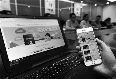 學生可以用電腦或手機收看名師課程 本報記者 馬昭 攝